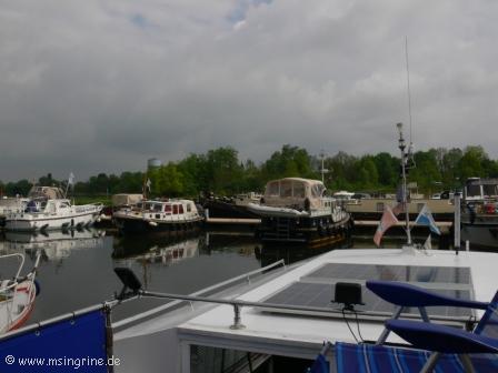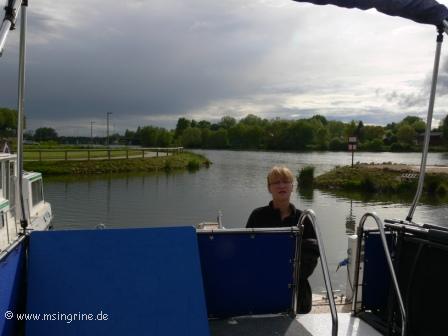 Tag 1 Do 1.5.2014 Vor Ort in Auxonne Zwei Wochen nach dem Transfer der Ingrine nach Auxonne sind wir zum Maifeiertag an die Côte-d´Or gereist, unser erster Besuch im Port Royal als Dauerlieger im Hafen. Heute ist auch in Frankreich ein fast werkfreier Feiertag, die Schleusen sind durch die Automatik zwar in Betrieb, aber es ruht hier alles, so gut wie kein Verkehr, weder auf den Straßen noch auf dem Fluss. Helga wollte trotzdem einen Versuch wagen, ob den wenigstens eine offene Bäckerei zu finden sei und hatte Glück, sie kam mit frischen Baguette und Croissants nach einem Spaziergang zum Boot zurück. Immer wieder gab es in den Wolkenfeldern große Lücken, die einen dazu trieben, den Sonnenstuhl oben auf dem Deck aufzusuchen. Durch den Feiertag war es wirklich für Frankreich ungewöhnlich ruhig und still, man konnte fast sagen tote Hose. Roy und Carol kamen für einen kleinen Plausch vorbei, sie wollten wissen, ob wir am Freitag rausfahren würden. Da aber Markttag angesagt war wollten wir den Tag mit Einkaufen verbringen, wir hatten unsere Vorräte nur für heute dabei, am Freitag war daher shoppen angesagt. |