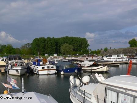 Tag 2 Fr 2.5.2014 Markttag in Auxonne Der Morgen begrüßte uns mit leichter Bewölkung, die Luft war kalt, aber der Sonnenschein hatte die Oberhand. Also ein perfekter Tag zum Bummeln, wenn das Wetter sich nur halten würde. Draußen war alles wieder wie gewohnt, der normale Alltag hatte uns wieder, selbst die Boote, die gestern im Hafen eine Zwangspause einlegen mussten, waren wieder unterwegs. Die Einkaufsliste wurde grob zusammengestellt und nach dem Bunkern von Frischwasser konnte es los in die Stadt gehen. Um die Kirche waren die Marktbuden aufgebaut, kleinere Nebenstraßen waren abgesperrt, aber die Hauptstraße war frei. Nach nur ein paar hundert Metern waren wir am Casino und es folgte Teil I der Einkaufstour. Die Hauptbestandteile für die Verpflegung der nächsten Tage landete im Einkaufswagen und dann an der Kasse. Alles wurde im Auto verstaut und dann ging es zu Fuß zu Teil II , dem Marktbesuch. Das Auto wurde einfach auf dem Parkplatz vom Supermarkt gelassen und die wenigen Meter zum Marktplatz waren schnell hinter uns gelassen worden. |