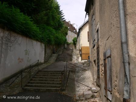 Ein Blick hoch Richtung Oberstadt mit der Kirche.