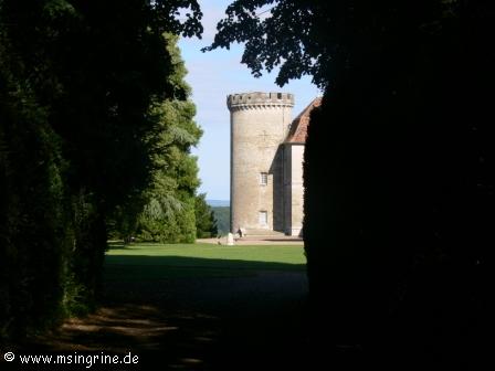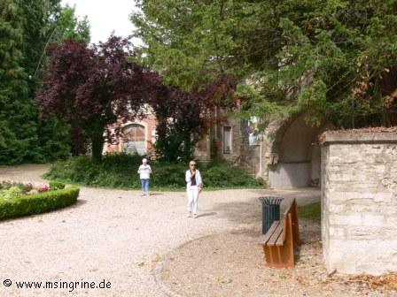 Durch den schattigen Park erlangten wir zuerst den Blick auf den Seitenflügel des Chateaus mit dem noch erhaltenen Wehrturm.