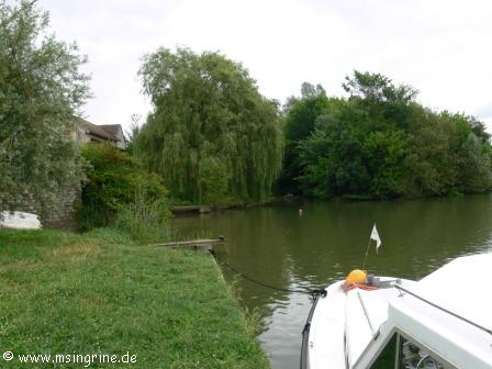 Um 12:30 haben wir am alten Verladekai von Maillys für die Mittagspause angelegt. Der Platz ist nicht sehr groß und an der unteren Mauer liegen sehr viele Stahltrossenreste im Wasser, das ist nichts für uns Kleinfahrzeuge.