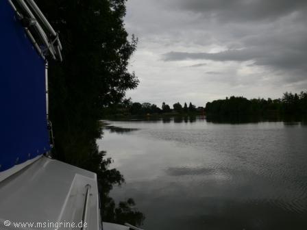 Nach der Flussbiegung dann der Ausblick auf den Stadtponton, den wir gespannt erwartet hatten. Gab es noch Platz für uns? Zumindest waren Lücken sichtbar. Eigentlich waren wir früh dran für eine Übernachtung, aber hier wollten wir Halt machen und uns die Stadt ansehen.