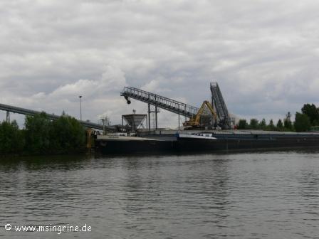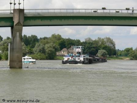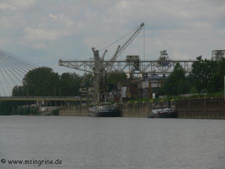 Unmittelbar vor der Brücke waren die alten Verladekais am Messegelände, ein Teil davon ist n och immer in Betrieb, obwohl es unterhalb der Stadt einen neuen Hafen gibt.