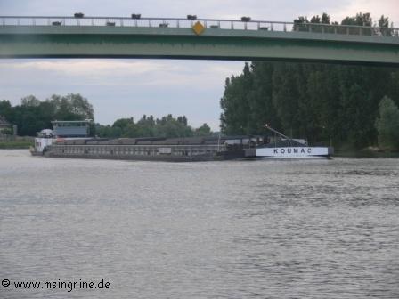 Wie üblich war ich am Morgen früh auf um die Natur zu genießen. Gegen 7:55 dann ein ungewöhnliches Rauschen, die Koumac, ein Frachter kam um die Ecke gebogen. Sie ragte hoch aus dem Wasser raus, eine Leerfahrt, dementsprechend hatte sie ein Tempo drauf.
