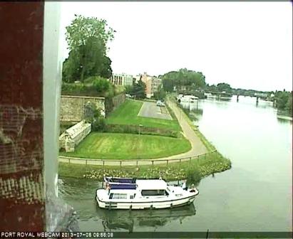 Heute geht es auf die vorletzte Etappe der Reise, wir wollten bis nach Gray kommen, um dann am Samstag unseren Hafen zu erreichen. Vor der Abfahrt kam mir noch die Idee, da ich noch mit dem Internet verbunden war, ein Foto über die Webcam zu machen, wenn wir aussen am Port Royal vorbei fahren. Also wurde das Bild eingerichtet und ein Screenshot gemacht.