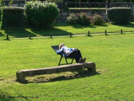 Um 16°° hatten wir angelegt und wie bestellt kam die Sonne noch einmal heraus. Die Wiese war frisch gemäht, es roch toll nach dem frischen Gras.