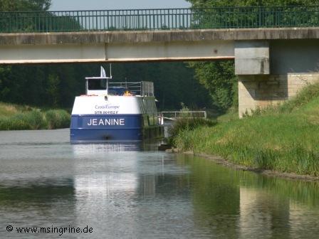 Gegenüber der Einfahrt zum Hafen lag das neue Hotelschiff der Region am Ufer, die Jeanine, die wir vor einigen Wochen in Gray erstmals gesehen hatten.