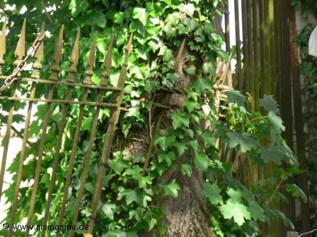 Zumindest der Zaun hat schon einige Jahre hinter sich, wenn man sich anschaut, wie der Baumstamm in die Gitterstäbe verwachsen ist.