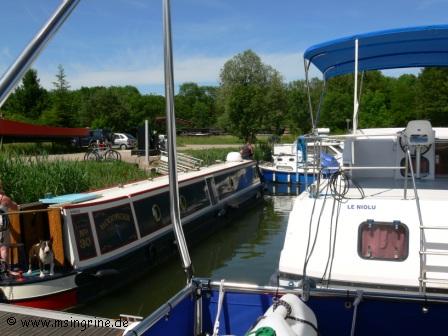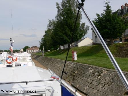 Doch so weit kamen wir leider nicht, die Ecl. 14 Vereux war in Panne geschaltet. Oberhalb lag ein Kahn vor der Schleuseneinfahrt, der war wohl einen Moment vor uns an der Schleuse angekommen. Es blieb uns dann nichts anderes übrig, als um 11:15 am Abweiser unterhalb der Schleuse anzulegen. VnF war über Funk nicht zu erreichen, das Telefon an der Schleuse wurde auch nicht bedient, da wollte bestimmt jemand eine ruhige Mittagspause haben.