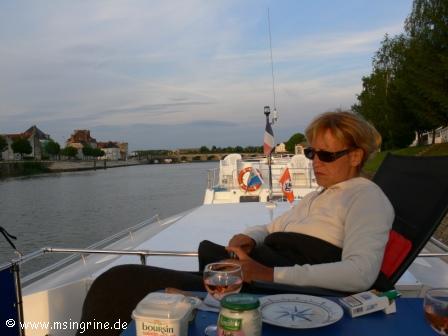 Tag 11 Fr 1.6.12 Auf geht´s Richtung Heimat ( - Hafen ) II Am Freitagmorgen hatten wir dann zeitig Gray verlassen, in der Mittagszeit wollten wir Savoyeux erreichen. Zwischenzeitlich war die La Blanche Hermine vom Vortag angekommen und wir haben uns darauf verständigt, dass der größere Kahn zuerst in die Schleuse geht. Der Eigner hat über Telefon den Tunnel von Savoyeux erreichen können, von dort wurde die Störung dann weiter gegeben. Um 12:25 ging es dann endlich weiter, nachdem die Panne von einem Eclusier der VnF behoben wurde, der dann doch irgendwann erreicht werden konnte. Wir waren mit der Hermine die einzigen Bergfahrer, aber in Gegenrichtung hatte es sich mächtig aufgestaut. Wir zählten alles in allem 5 Boote, die dort auf die Freigabe der Schleuse gewartet hatten. Der Rest der Strecke war dann wie gewohnt ruhig verlaufen und der Hafen wurde kurz darauf erreicht. Nebenan auf der Irchel gab eine Schwalbe ein Konzert. An Land gab es nicht viel neues zu sehen, wir waren ja auch nur knapp zwei Wochen unterwegs gewesen. Tag 12 Fr 2.6.12 Zurück im Heimat in Savoyeux Wir waren angekommen und unser Stegnachbar legte ab für eine kleine Probefahrt. Für uns war es das erste mal, das wir gesehen hatten, das er mit dem Ding auch unterwegs war. Alles wirkte neu und sauberer wie vorher, alles sah viel schöner wie vorher aus. Dann war Schluss mit dem werkeln und es wurde angefangen für die Rückfahrt zu packen. Danach durfte man an Deck zum Ausruhen . . . So haben wir dann das Ende des Urlaubes eingeleitet.