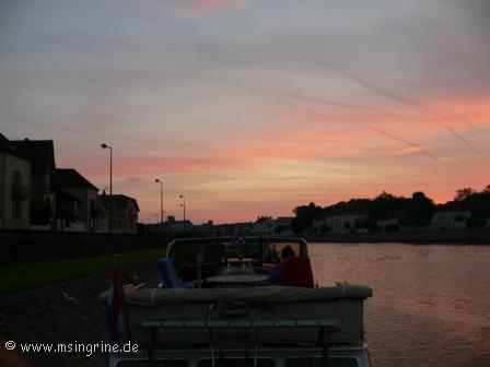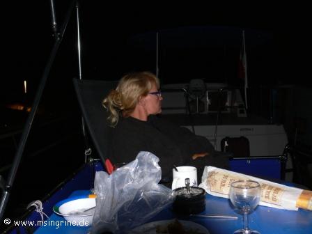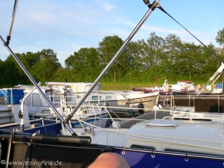 Ein paar Boote weiter, wir waren um 19:30 nicht mehr so alleine, gab es dann etwas Stress. Ein Mietbootfahrer hatte an Land seinen Grill angeschmissen und der Qualm zog direkt einem Privatfahrer in den Salon, lautes Palaver war die Folge, man drohte sogar mit einem Wassereimer. Letztendlich wurde der Grill versetzt und es kehrte wieder Ruhe ein.