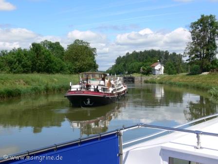 Auf der Höhe der Ferme de Montrichier passte es dann und ich zog langsam vorbei. Die Entfernung zur nächsten Schleuse war so abgepasst, dass wir ausreichend früh vor dem Schleichfahrer dort sind, damit wir diese vor ihm passieren konnten.