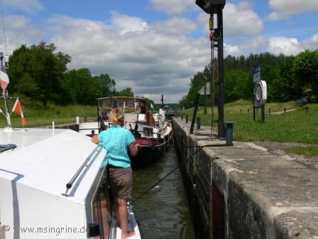 Die Ecl. 18 von Heuilley war bei Ankunft in Betrieb, ein Schiff vor uns in Bergfahrt, wir mussten dadurch etwas länger Warten, bis die Schleuse wieder unten war.