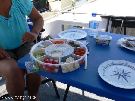 Dann kamen irgendwann die Teller nach oben an Deck und es wurde geschlemmt.