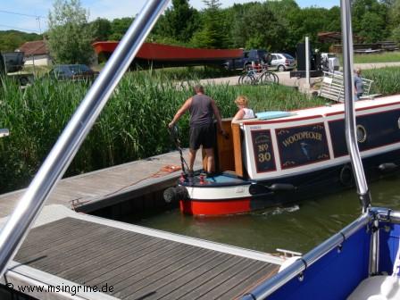 Es war nicht ganz so einfach das lange Narrowboot vom Steg frei zubekommen.