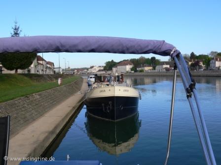 An Bord war noch alles ziemlich ruhig geblieben und so zog ich mich mit meinem Pott Kaffee auf das Nildeck zurück und genoss die frische Luft draußen. Am Abend waren keine weiteren Boote mehr gekommen und es war sehr ruhig geblieben. Und wie es ist wenn man am Wasser sein Brot zu deutlich am Fenster hält, ruck zuck gab es Zaungäste. Mira war begeistert vom Fenster aus die Schwäne zu füttern. Sie erklärte später alle Schwäne zu ihren Freunden. Zum Glück gab es vom Vortag genug alte Brotreste an Bord, die wir immer vorsorglich sammeln, man ahnt ja nie, wer gerade mal vorbeischaut. Und dann gab es wieder die Order Schwimmweste an, Signalpfeifentest und ab aufs Oberdeck, klar zum Ablegen um 10:05. Unser 2. Steuermann fühlte sich wohl und sah überhaupt keinen Grund in das Geschehen einzugreifen. Volles Vertrauen zur Schiffsleitung. Er darf wiederkommen. Derweil machte sich Mama Denise daran, das Ruder zu übernehmen, was sie gut meisterte. Ist ja auch etwas wie Autofahren. Unser 2. Steuermann wollte sich dann doch einmal über den gerade anliegenden Kurs und die Drift informieren, war aber sehr schnell zufrieden und gab sich wieder seiner Flasche hin. Der selbe Text 30 Jahre später wäre schon bedenklich . . . ![]() Ich hatte dann die Zeit hochgerechnet und dann für eine längere Mittagspause am Engländersteg bei Pesmes plädiert, so konnte Mira auch noch an Land herumtoben. Um 12:25 lagen wir dort am Steg. Wir waren dort alleine und so konnten wir auch ziemlich viel Blödsinn veranstalten. Leider waren dann doch noch ein paar Wolken aufgezogen, aber es blieb zumindest trocken. Längere Zeit konnte man ein monotones Tuckern hören, und dann kam ein größerer Kahn um die Ecke. Es war die Avanti II von VnF, die hier im Uferbereich alte Bäume und Stümpfe entfernte, später kam noch ein Kollege mit einem Häxler dazu. Um 14:20 legten wir dann für die restlichen paar Kilometer ab. Dann war es soweit, Auxonne man in Sicht. Unser Hafenplatz war im Vorfeld von mir bestellt und reserviert worden und Roy und Carol kamen wie immer um uns zu begrüßen und um uns in Empfang zu nehmen. Um17:30 wurde dann die Maschine abgestellt, willkommen im Port Royal. weiter mit dem Sonntag geht es hier . . . . |