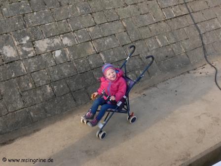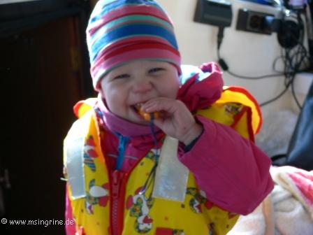 Tag 3 Sa 19.4.2014 Sonnenschein an einem Regentag Wie üblich war um 7°° die Nacht zu Ende, Schicksal mit Kleinkindern an Bord, aber wir stehen eigentlich immer so früh auf. Belohnung gab es durch einen wunderschönen Sonnenaufgang bei klarem Himmel. Leichter Dunst lag auf dem Wasser und nur in der Ferne konnte man ein paar Wolken sehen. Mal sehen wie es wird, für heute war eigentlich graues Wetter wie am Vortag angemeldet. Wie gewohnt war der Uferbereich am Anleger sehr gepflegt hergerichtet, die Wiese war wohl frisch geschnitten, zumindest roch alles nach frischem Gras. So konnte man es aushalten und ich hatte dort eine gute halbe Stunde zum Schauen für mich alleine. Allmählich kam der Rest der Meute zum Vorschein und es gab dann auch noch richtiges Frühstück. ![]() Wie im Vorfeld eingeplant ging es dann für den weiblichen Teil der Crew noch einmal in den Intermarché, natürlich nur für das nötigste. . . Mira probierte direkt den Buggy aus, den wir extra für diese Fälle an Bord haben. In Arc-lès-Gray lag die " Freitag der Dreizehnte" im Port Saint Martin, die junge Familie hatte wie im Jahr zuvor bei uns am Steg überwintert und ist nun wieder hier unten vor Ort. Wir vermuten, dass man sich nebenher um die Liegeplätze für die durchreisenden Boote kümmert. Mira war wieder zu ihrem Papa auf das Deck gekrabbelt und hatte Spaß dabei, die Tiere auf den Wiesen und Feldern und am Flussufer zu beobachten. Oben an Deck wurden die Fische gezählt, oder was auch immer, zumindest gab es keine Langeweile. Wir hatten ja auch mächtig Glück mit dem Wetter. Mira hatte voll ihren Spaß und wollte absolut nicht nach unten unter Deck. Sie hielt sich, wie angewiesen an der Reling fest und schaute den Fahnen im Fahrtwind zu. Oben am Mast drehte sich dann ja auch immer die Windmühle von der Wetterstation und der Windrichtungsanzeiger wechselte ständig, toll. . . . Der extra gekaufte neue Softball war natürlich die Attraktion auf der Wiese und Papa Ingo hatte kaum eine echte Chance. Mira war begeistert von so einem großen Schiff, das direkt vor uns anhielt. Vorbei ging es am Campingplatz von Lamarche-sur-Saône, der mit einigen Wohnmobilen recht gut besucht war. |