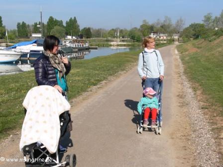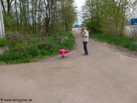 Es brauchte etwas Zeit um um das Hafenbecken herum zu gehen, das Auto wollte sie nicht nehmen. Unsere Fahrräder hatte ich nach dem Winter noch nicht durchgesehen und aus Platzgründen für die paar Tage im Auto im Kofferraum verstaut. Im Schilfgestrüpp konnte man die Enten teilweise kaum erkennen, so gut war die Tarnung durch das Federkleid. Mira taufte die Küken auf die Namen Mira und Mirko und erklärte auch sie zu ihren Freunden. Aber kaum hat man sich umgedreht ..................... Die Versuchung war auch einfach zu groß. Mira machte es sich nach dem Frühstück in ihrem kleinen Liegestuhl bequem, den ich beim letzten Besuch zufällig entdeckt hatte, leider ein Einzelstück. Aber vielleicht finden wir einen ähnlichen zweiten Stuhl, falls einmal beide größeren Kinder an Bord sein sollten. In den Straßen herrschte noch ziemliche Ruhe, es war ja eigentlich auch noch nicht so spät am Morgen. Durch die kleine Straße am Stadtanleger sind wir ins Zentrum gelaufen. Bei dem schönen blauen Himmel konnte man auch gut die gedrehte Turmspitze erkennen, die sich im oberen Ende leicht zur Seite neigt. Danach hat sie auch noch einen Löwen bezwungen. Dort wurde noch ein Stück der Stadtmauer und der Wehranlage mit den kleinen Wachtürmchen bestaunt. Das schöne Sonnenwetter hielt an und wir konnten es uns auf dem Nildeck schön gemütlich machen. Mira hatte es sich dort auch eingerichtet und spielte mit den kleinen Männleins und Autos, die wir mitgenommen hatten. Und hier gab es so viele wertvolle kleine Steine, die unbedingt mit mußten, wozu hat man denn Jackentaschen ? Vom Anleger des Wasserskiclubs konnte man ein schönes Bild von der Stadtansicht machen. Hier durfte ich allerdings nicht lange stehen, da Mira energisch protestierte, ich solle vom Anleger herunter kommen. ![]() weiter mit dem Montag geht es hier . . . . |