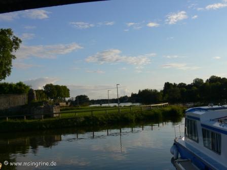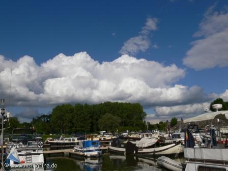 Tag 1 Sa 16.8.2014 Alleine zum Boot Helga fehlte 1 Tag Urlaub an 2 Wochen und so gab es Überlegungen, ob ich alleine zum Boot voraus fahre und alles herrichte oder ob wir zusammen nach Frankreich fahren und ich dadurch 3 Tage im Vorfeld verliere. Da im Frühjahr das Nachkommen per Flieger gut funktionierte haben wir uns erneut dazu entschloßen. So konnte ich die ersten Tage am Boot dazu nutzen, um Einkäufe zu besorgen, Gefrierschrank zu starten und die Liegestühle zu testen. Für Mitte August war es das perfekte Wetter, man konnte lange am Abend draußen sitzen und die Luft geniessen. Tag 2 So 17.8.2014 Alleine zum Grillplatz Am Morgen hatten wir uns zum Telefonat verabredet. Und über die Web Cam wurde genau beobachtet, was ich da so treibe . . . Auf dem Treidelweg hinter dem Ufer konnte man noch die Spuren sehen, den der Sturm in der letzten Zeit verursacht hat, überall lagen noch Äste herum. Kurz vor 19°° bin ich in den Hafen zurück gekehrt, wie an jedem Wochenende war nicht so viel Betrieb am Gastlieger. Und um 21°° habe ich dann mit dem Sonnenuntergang meine Aufzeichnungen beendet. Morgen ist ja auch noch ein Tag. Tag 3 Mo 18.8.2014 Alleine zum Flugplatz Helga musste heute den Tag noch arbeiten, da ihr 1 Urlaubstag fehlte. Direkt nach der Arbeit ist sie zum Flughafen gefahren um dann mit dem Flieger nach Basel / Mulhouse zukommen. Ich habe mich gegen 18°° auf den Weg gemacht, um sie dort abzuholen. Die Fahrt war gemütlich und entspannt, kaum Verkehr, Sommerwetter. Auf dem Vorfeld stand eine Super Constellation der Uhrenfirma Breitling, die mir beim letzten Besuch hier bereits aufgefallen war. Leider hatte ich damals den Fotoapparat nicht mit, deswegen hatte ich das diesmal eingeplant. Auf der anderen Seite des Rheintales konnte man eine Gewitterfront erkennen, die sich über dem Feldberg im Schwarzwald aufbaute. Das Grollen war in weiter Ferne nur schwach zu vernehmen, da der Betrieb auf dem Flugplatz dies übertönte. |